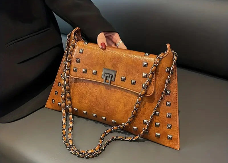 Add a touch of vintage charm to your everyday look with this Leather Textured Shoulder Bag. Featuring golden rivet accents and a unique armpit leather texture, it’s perfect for casual outings. Carry it comfortably by hand or sling it over your shoulder for effortless style with a playful twist.
