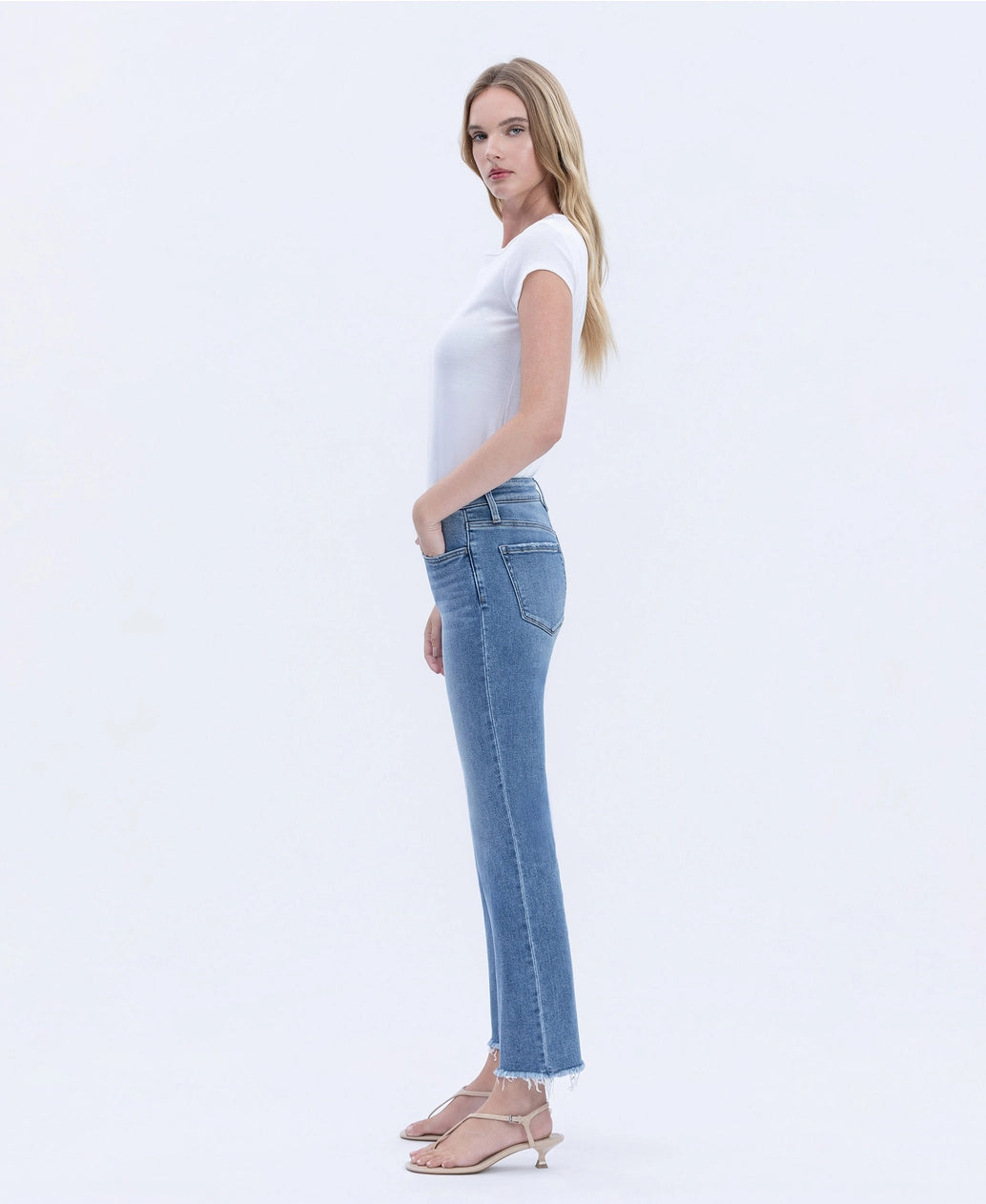 These mid-rise straight jeans are your new denim obsession! Featuring a flattering crop length and raw hem edge, they're perfect for showing off your favorite sneakers or pairing with heels. The medium wash gives you that effortlessly cool vibe that works with literally everything in your closet. Comfortable, versatile, and undeniably chic—grab yours and get ready to turn heads.