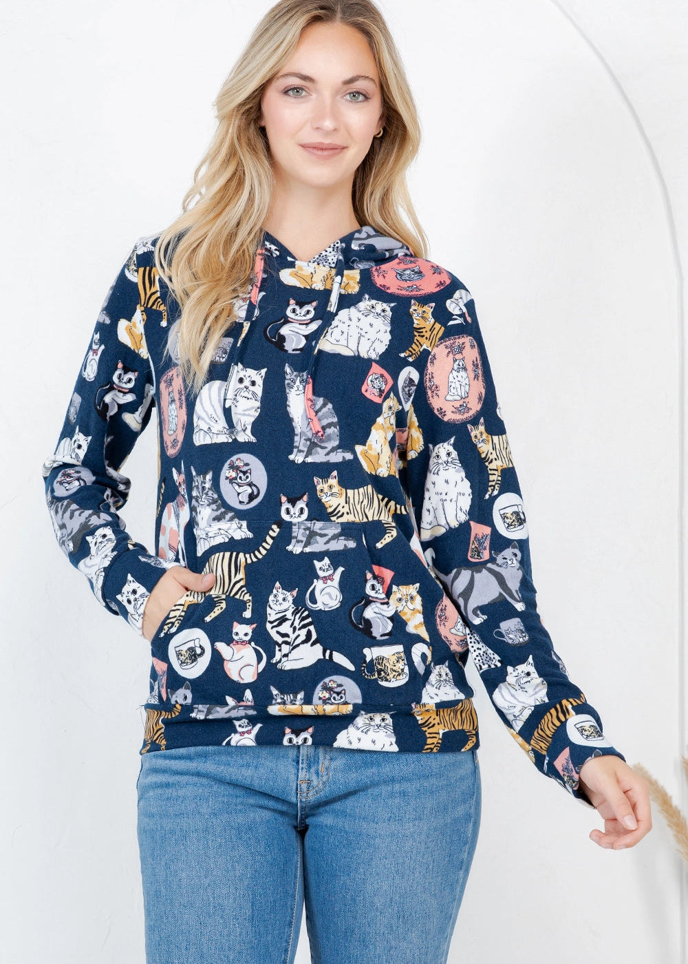 This hoodie is a must-have for any cat lover. Its unique cat print adds a fun touch to any outfit, while the soft and stretchable material ensures ultimate comfort. Plus, it even has a comfy pocket to keep your hands warm on those chilly days.