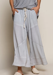 Loose knit culottes pants featuring ribbed fabrication on contrast and finished with elastic waistband with adjustable trim strap.