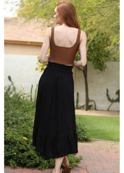 Elevate your wardrobe with the Alden Maxi Skirt, featuring a flattering smocked waist that ensures a comfortable, tailored fit. Its elegant angled hem adds a modern twist, creating graceful movement with every step. Perfect for day-to-night wear, this maxi skirt combines style and comfort effortlessly, making it a versatile staple for any occasion.