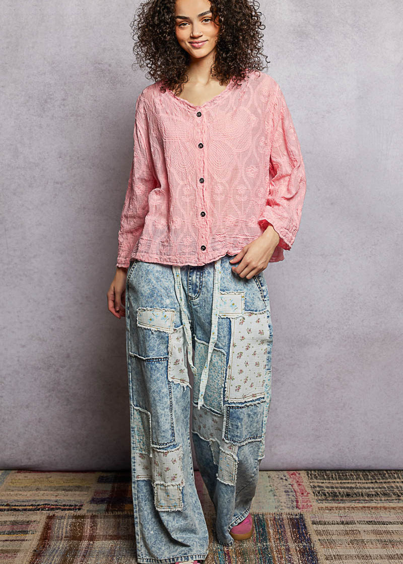Introducing the Ally Airy Top—your new go-to for effortless style! This charming V-neck beauty features three-quarter sleeves and a wonderfully roomy fit that lets you breathe easy. Crafted from lightweight cotton, it's perfect for staying cool and comfy all day long. Love the details? We do too—think delicate embroidery accents, sturdy metal buttons, and a sweet scalloped edge that adds just the right touch of personality. Available in solid colors that mix and match with everything in your closet. Simple, sweet, and seriously wearable.