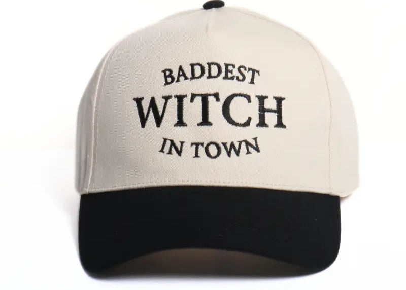Own your power with the "BADDEST WITCH IN TOWN" embroidered two-tone trucker hat — bold, confident, and perfect for adding a little attitude to any outfit.