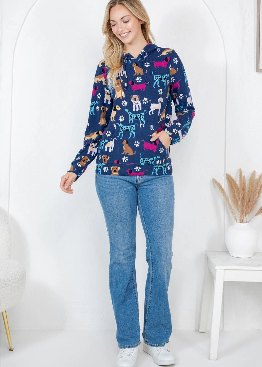 This hoodie is a must-have for any dog lover. Its unique dog print adds a fun touch to any outfit, while the soft and stretchable material ensures ultimate comfort. Plus, it even has a comfy pocket to keep your hands warm on those chilly days.