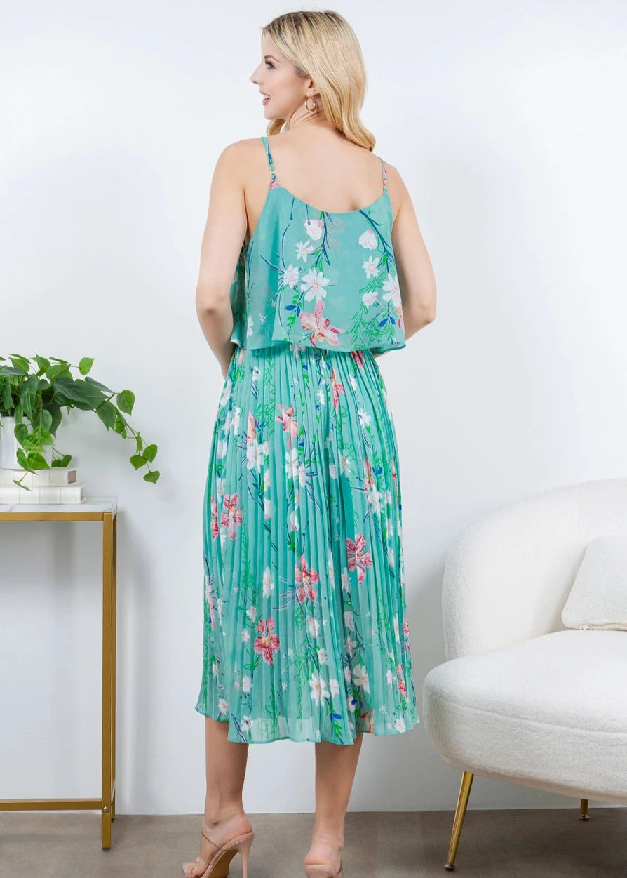 Let our Franny Floral Dress bring out your inner goddess with its stunning floral print and delicate pleated detailing. This midi dress effortlessly combines elegance and comfort - perfect for any occasion. Indulge in its lightweight fabric and flowy silhouette, and elevate your style with this timeless and luxurious piece.