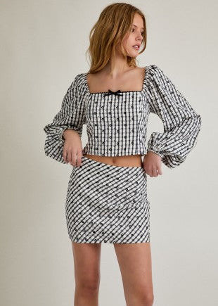 Transform your style with this stunning two-piece ensemble that combines timeless elegance with modern edge. The square neckline blouse showcases intricate lace trim detailing that draws the eye and elevates any occasion, while the matching mini skirt creates a cohesive, fashion-forward look. This set is designed to make you feel confident and beautiful—whether you're heading out for a special evening or turning heads at your next social gathering. The lace accents add just the right amount of sophistication and femininity, making this versatile pairing work for countless occasions.